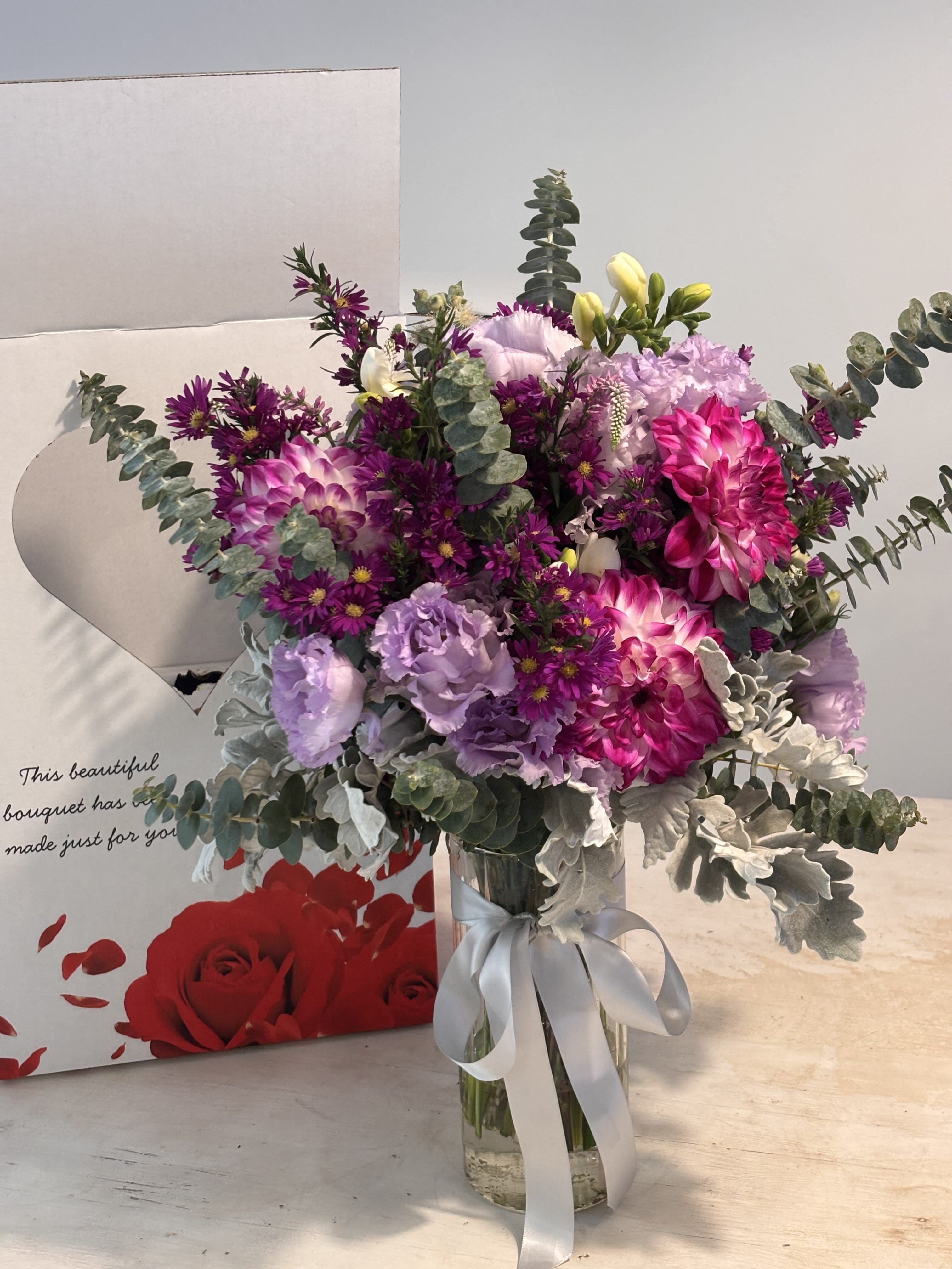 Your bouquets specialist will package your bouquet in a vase securely in the custom designed Bouquet Box. We personally deliver your order to the address/s you need on the wedding day.