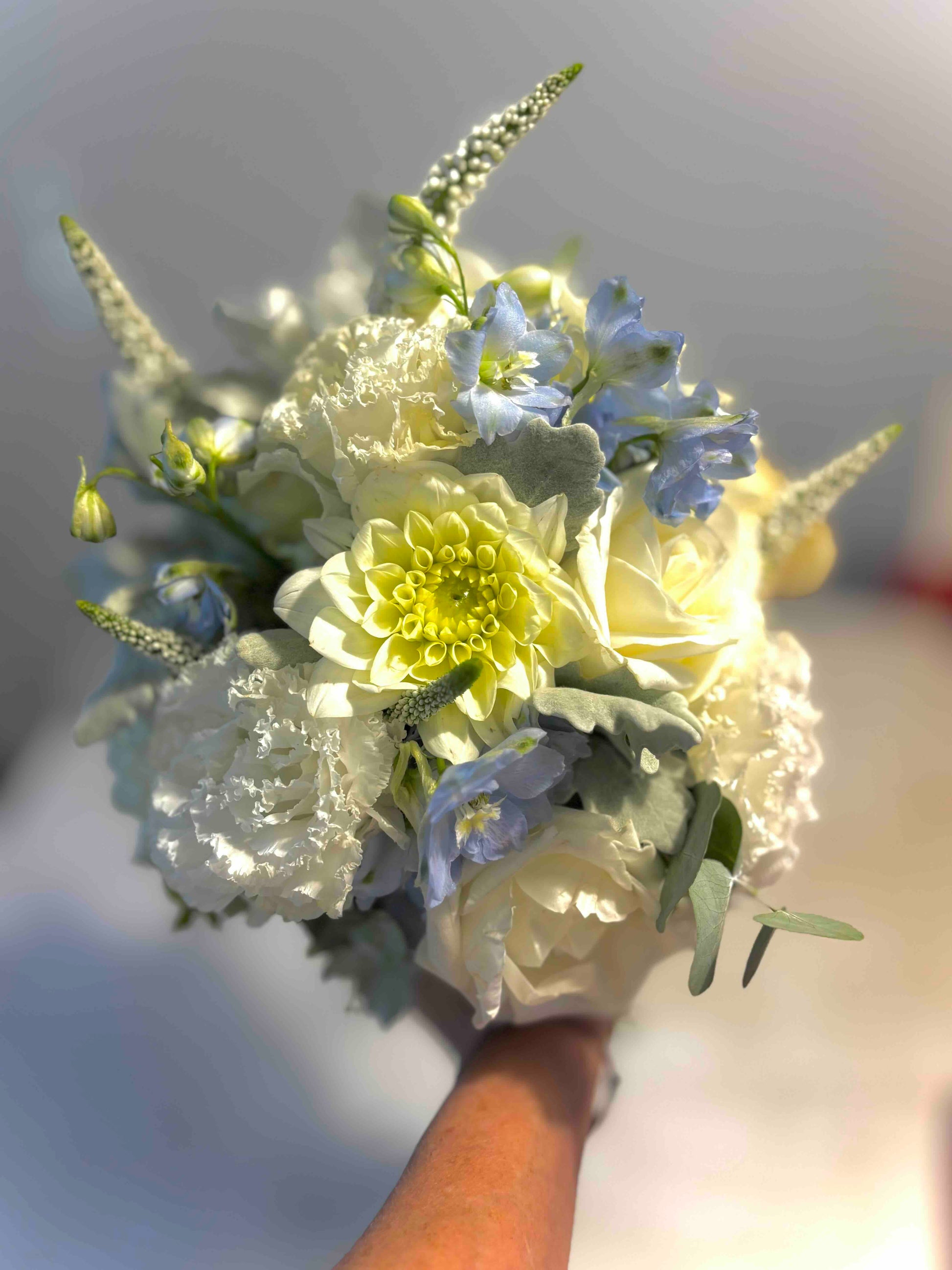 The perfect choice for any style of wedding or gown design. A traditional shape is in a round posy form and can be made using a wide variety of flowers. The round shape is what sets this style of bouquet away from assymetrical, can be styled a little more formal or free flowing.